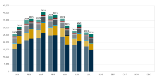 To see the July 2025 wholesale shipment report broken down by RV category, click here.