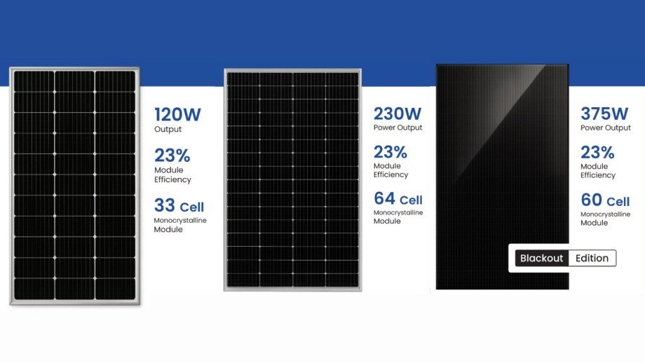 The solar panels will be available in four sizes: 120 watts, 200 watts, 230 watts and 375 watts.