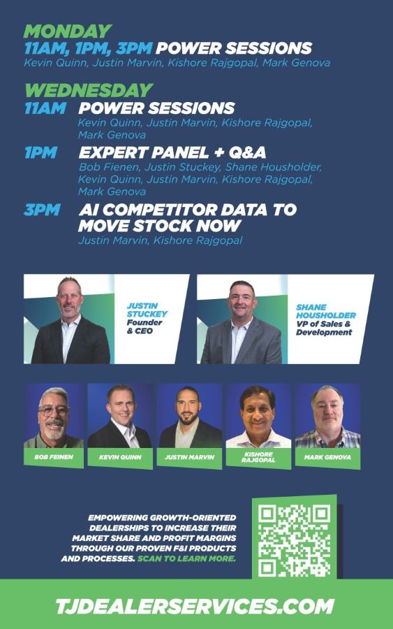 Genova will discuss reinsurance during educational sessions sponsored by T&J Dealer Services in the Younkin Theater on Monday and Wednesday. He will be available at the T&J booth (No. 119-120 in Aisle D) for one-on-one discussions.