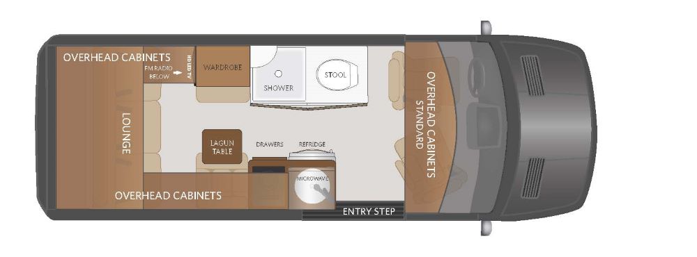 The model has four floor plans. The AL2 floorplan is built on a Mercedes-Benz Sprinter 144-inch wheelbase. Miller called the AL2 Fleetwood’s new “adventure floorplan.” It is built to drive off-road with all-wheel drive and roof rack options.