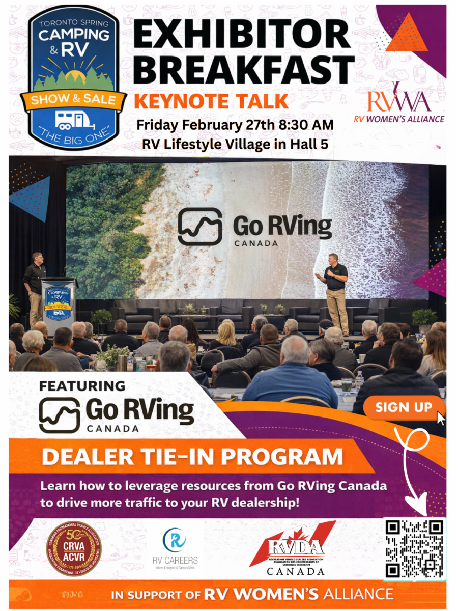 Go RVing Canada will be featured during the Exhibitor Breakfast at the annual Toronto Spring Camping and RV Show.