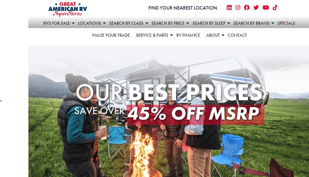 Great American RV SuperStores has 11 locations serving over 10,000 campers each year. The company’s website traffic has more than 1 million unique shoppers on the site annually and over 50,000 leads.