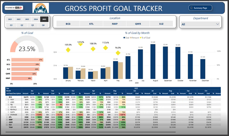 - Goal Tracker: Tracks goals by department for the full year to quickly compare current performance against year-to-date goals, forecast progress against goals and make data-driven adjustments.