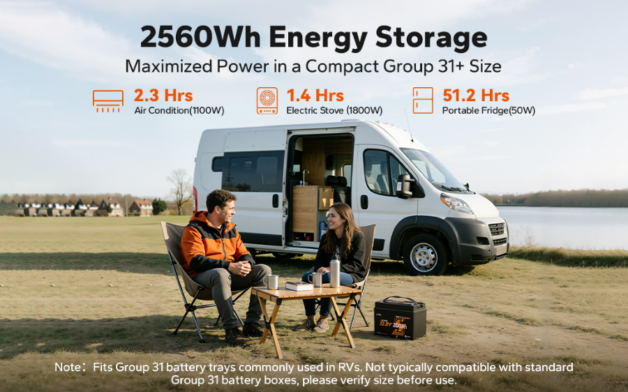 LiTime said its new Xtra Mini RV Lithium Battery achieves a full 200-amp-hour capacity within a near-Group 31 battery tray, 0.6 inches taller than the BCI Group 31 standard.
