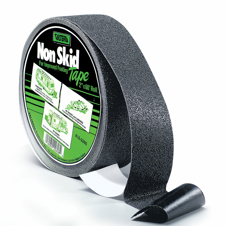 Grit surface which improves footing on steps, ladders and trailer frames.