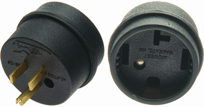 Plugs into 20 amp duplex receptacles, then will accept 50 amp plug.