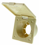 Flush mounted, high impact housing provides convenient access to RV power cable through an integral protective cover that has a locking provision.
