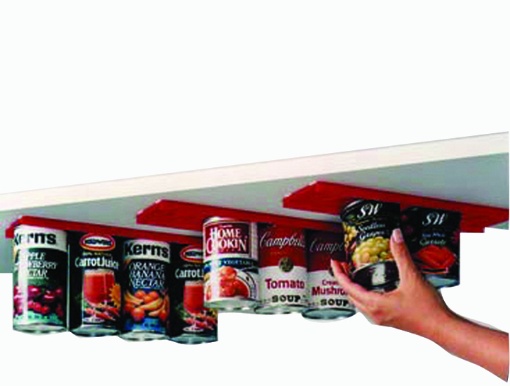 Patented two-way action allows the consumer to slide cans in and out from the end, or snap out in the middle. See at a glance what you have, increase your cabinet storage. 3 sizes fit most common can diameters, easy to install, with tape strips or wood screws (provided). 3 pack will hold 11 cans, multiple uses within RV, boat and homes. Can be used on top and bottom of cabinet...cans don't slide around.