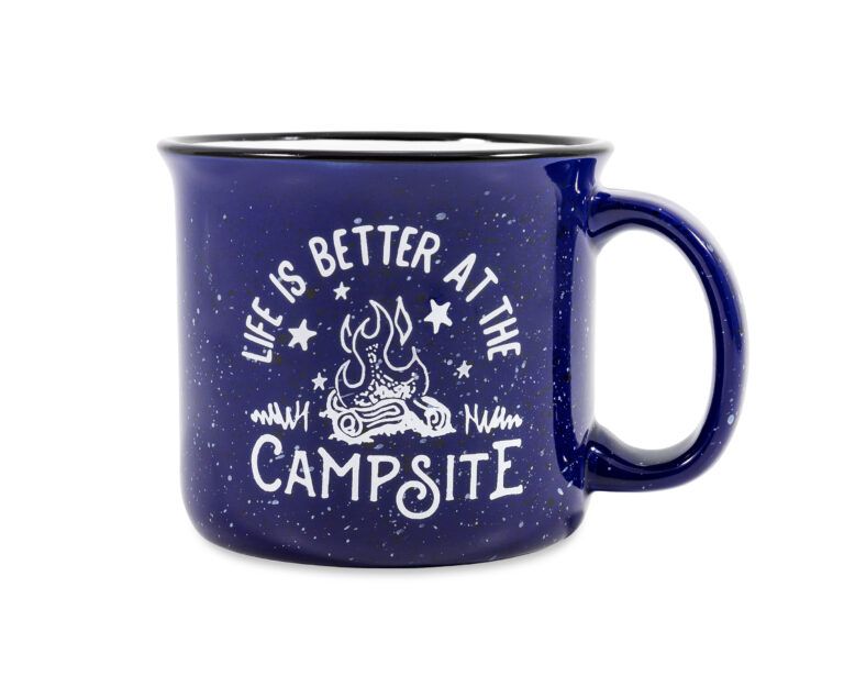 Ceramic Mug, Blue, Campfire Design