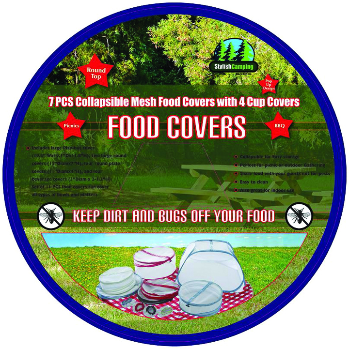 Order Direct from SupplierCollapsible and lightweight food covers. Easy to store and carry. Great for outdoors and home use. FC-68103 includes 3 covers 16.5", 14.5" and 12.5". FC-68102 includes one large play hut cover, two large round covers, four round plate covers and four beverage covers.
