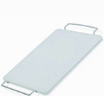 Over-the-sink polyethylene cutting board, with adjustable handles. Board size: 13" W x 10" L x 9/16" D.