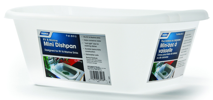 Designed to fit RV sinks. Durable, heavy-duty construction. Holds 9 quarts. Camco's Mini Dish Drainer fits perfectly inside for easy storage. 15.75” x 12.38” x 6”