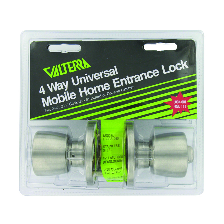 Door Lock, Entrance, 4-Way Universal, Knob X Knob, Ss, Clam Shell