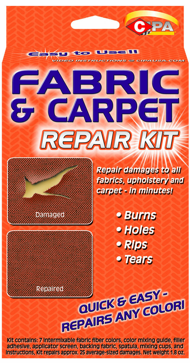 Order Direct from SupplierUsed to repair damages on fabric materials such as chairs, couches, auto seats, clothing, drapes, luggage, boat seating, RV seating or any vehicle seating. Used to restore and repair burns, holes and general damages in carpeting. Use on fabrics and carpets in homes, automobiles, boats and businesses.