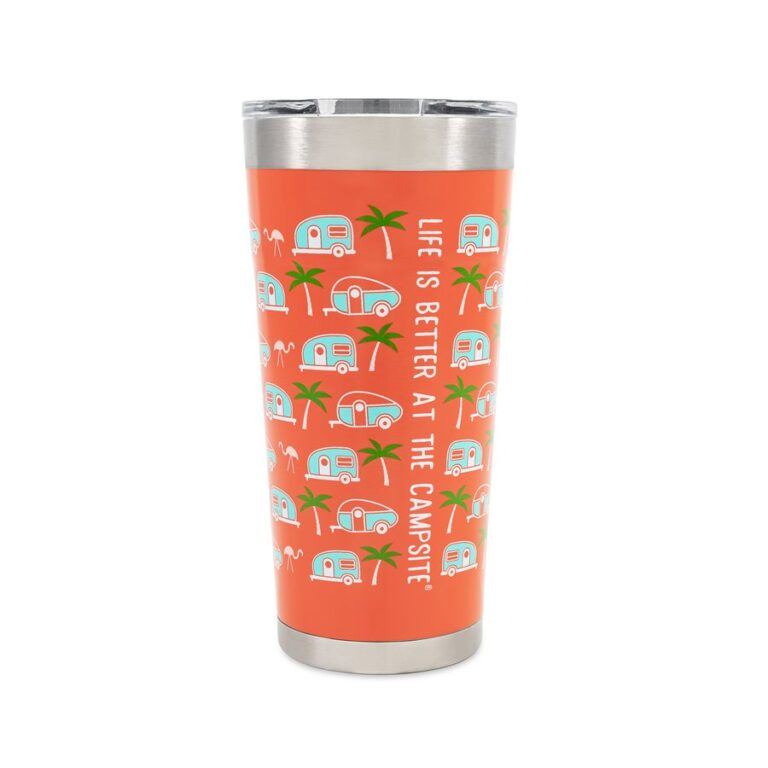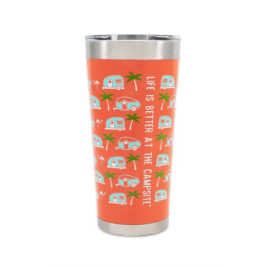 Life is Better at the Campsite Printed Tumbler, Pink, Palm Tree and RV Pattern, 20 oz.