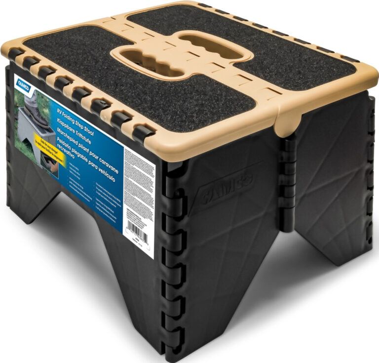 Step Stool, Plastic, Folding W/ Non Skid, Tan/black