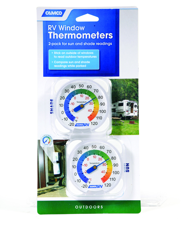 Order Direct from SupplierMount thermometers on exterior of window panes (one on each side of your RV). This will allow you to compare temperature readings in sun and shade wherever you are parked. Two-pack for sun & shade readings.