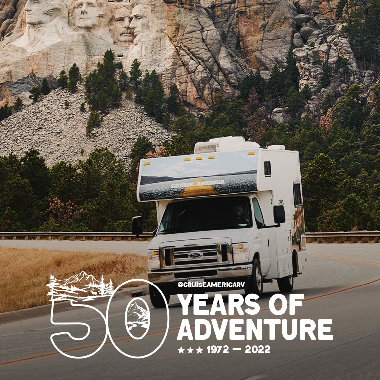 To mark RV rental company Cruise America’s golden anniversary, for 50 weeks from July 1 through June 15, each entry through the company’s “50 Years, 50 Trips!” web link will be entered to win $500 in trip credit to the destination of their choice from any of Cruise America’s 130 nationwide locations.