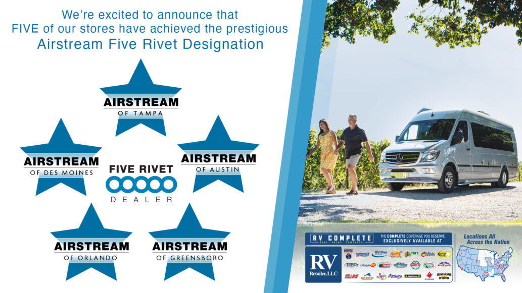 “Airstream is an iconic brand cherished by thousands of RV enthusiasts around the globe,” said Jon Ferrando, president, and CEO of RVR. “We are honored to represent the brand and achieve its highest level of customer service with the Five Rivet distinction.”